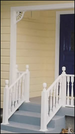 Newel Posts can be used to continue porch railing down steps, as shown in photo of SM-Plain Newels.