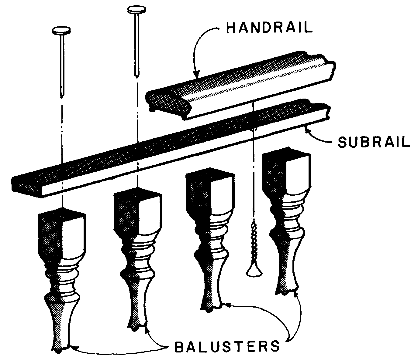 We strongly recommend using Subrail under your Handrail. This will greatly simplify installation, as shown here. Nail or screw through the top of the Subrail, into the top of the Baluster. Then, screw through bottom of the Subrail into bottom of Handrail ... and no nails or screws will show!