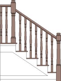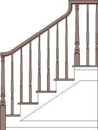 In this balustrade style, a continuous Handrail is placed on top of the Newel Posts. You will need pin top Newel Posts and special curved pieces called Fittings. They will be used where your balustrade changes height or direction.